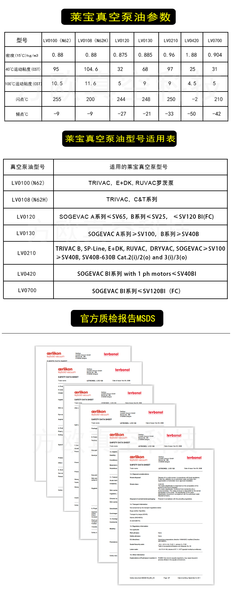 名 称: 莱宝真空泵油LVO100 LVO130 LVO120 LVO108 LVO210 LVO420 LVO700